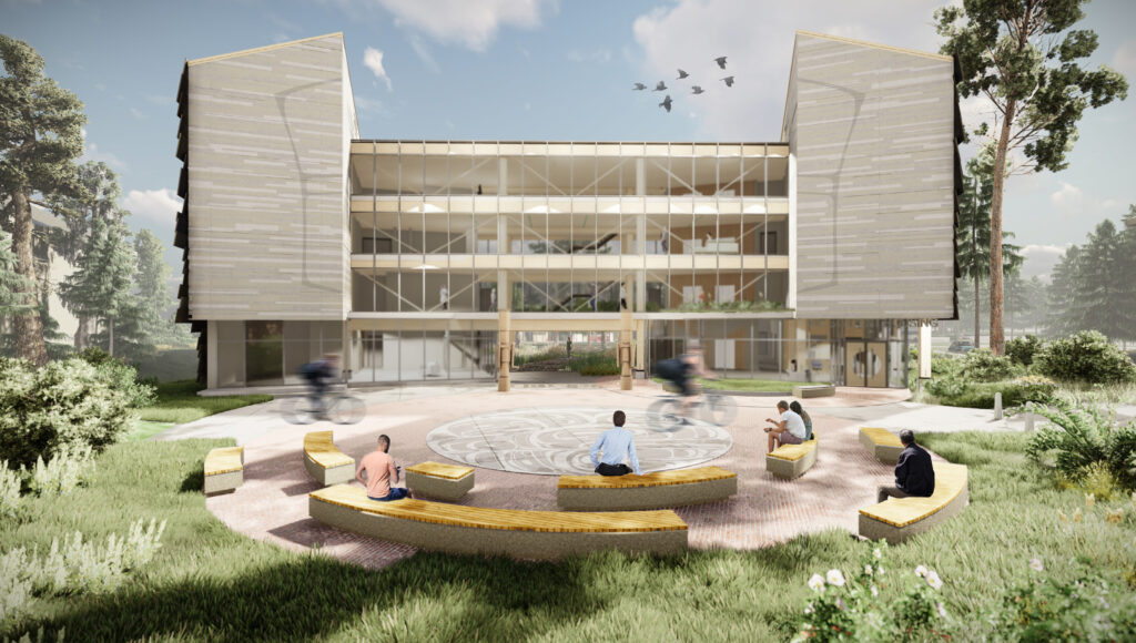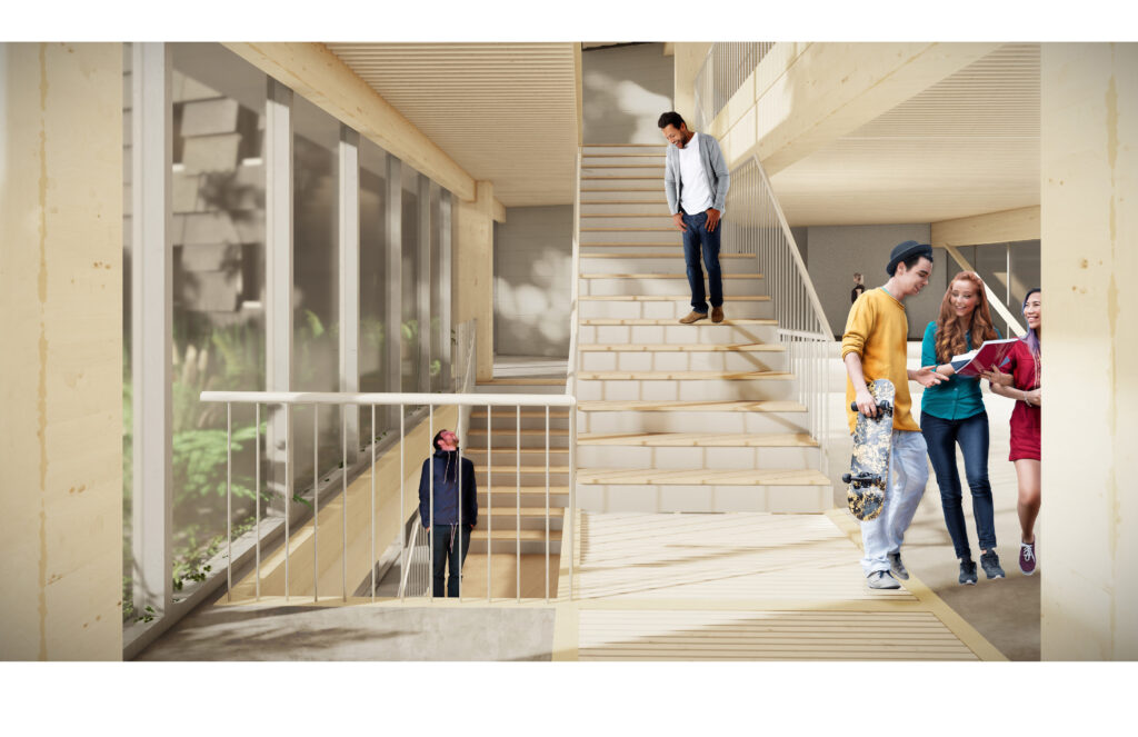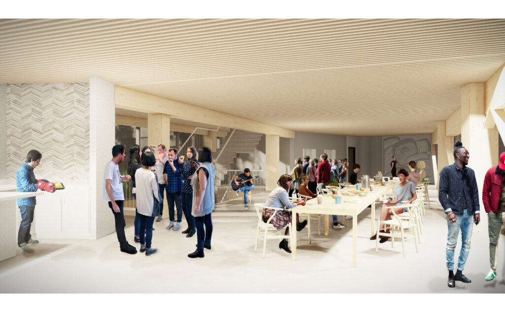 This student housing project with its two, four-storey buildings, 217 beds and a host of community-centric amenity spaces is a first of its kind for the region, bringing much-needed affordable student housing to the North Island College Comox campus. Extensive research into traditional methods of building and ways of living, informed by the K'ómoks First Nation, is woven into the building's design, orientation and organizational structure.