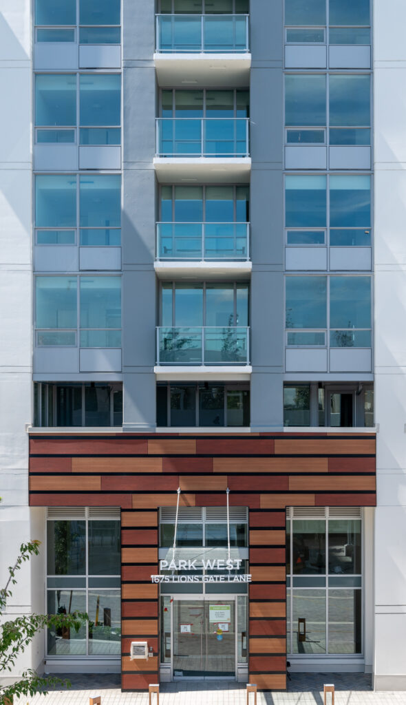 Park West is a two-tower, 301,781 sq ft mixed-use project with 258 luxury residential suites in North Vancouver. The development also includes three-storey townhouse units, a restaurant, and a two-storey 13,000 sq ft commercial building.