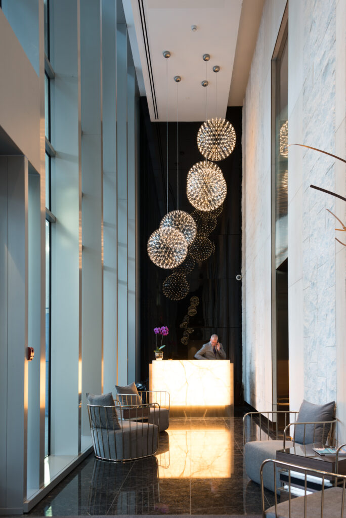 This 63 storey, Arthur Erickson inspired twisting tower includes high-end residential suites and a luxury hotel. The amenity space is extensive including restaurants, a champagne bar, fitness centre, conference and banquet rooms, and Vancouver’s first pool bar and nightclub. The intricacy of this large-scale project is amplified by the individual floor plates required to achieve the buildings dramatic ‘twist’ as it rises into the sky. LEED Silver.